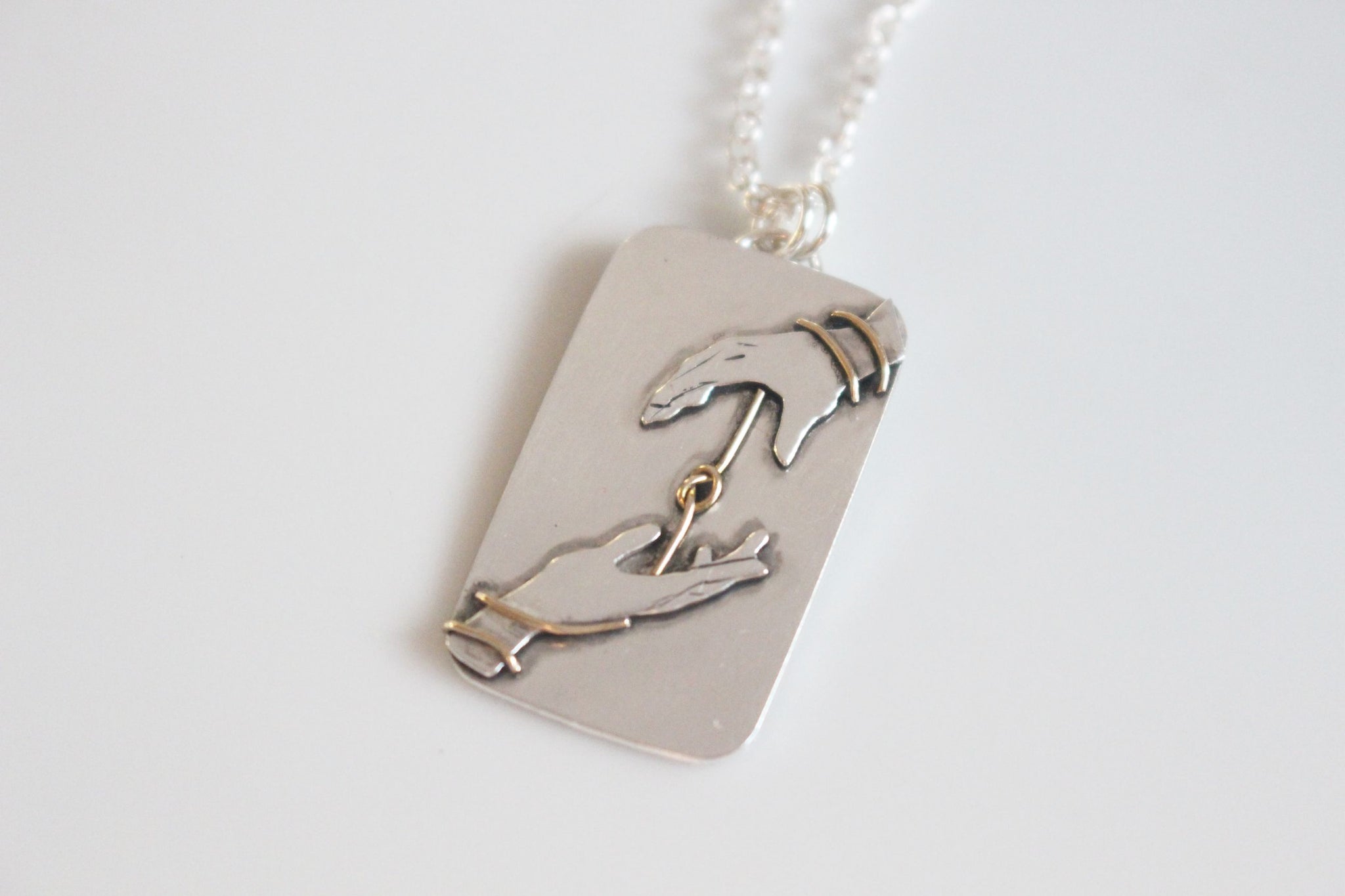 Pendant is 1.25" by .75", sterling silver 18" necklace.